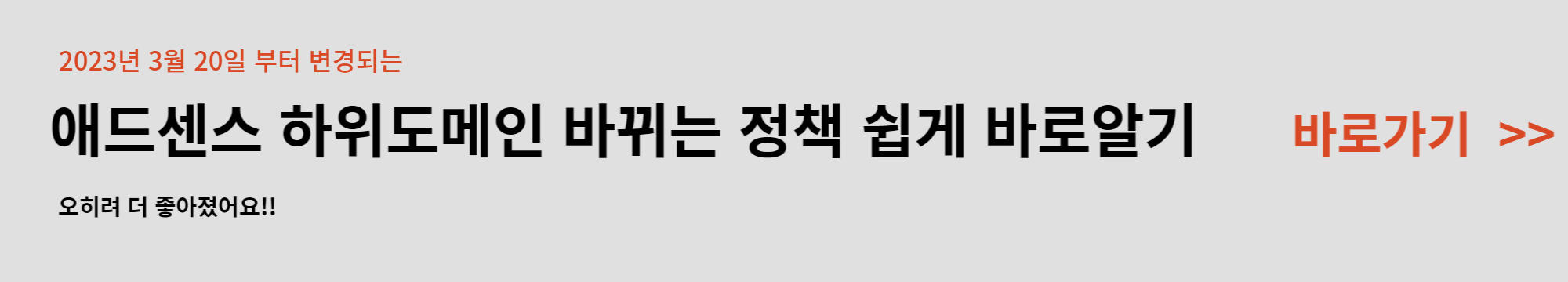 카테고리 없음 2023년 구글애드센스 하위도메인 헉!이제 쓸 수 없다고!??? ! by 【㏘№㏘℡♥ 2023. 2. 24. 반응형 2023년 3월 20일부터 하위 도메인 삭제한답니다. 그럼 이제 하위 도메인 쓸수 없다면, 도메인 추가로 더 만들어 애드센스 승인받아야 할까요? 그럼 추가 비용도 더 들고 승인받기 까지 더 많은 글을 써야하고 큰일입니다! 여러분들은 아마도 놀래셨을 겁니다! 하지만 걱정하실 거 없습니다! 오히려 더 좋아졌습니다! 구글 애드센스 하위도메인 변경 정책 ☞ 클릭하셔서 더 제세한 내용 확인하세요! 반응형 공유하기 게시글 관리 디지탈 노마드 저작자표시 비영리 변경금지 (새창열림)